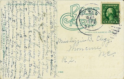 The sender of this ‘newsy’ postcard seems to have hosted a parade of sickly houseguests recently. I hope for her sake that ‘Jess & Wife’ were in good health!